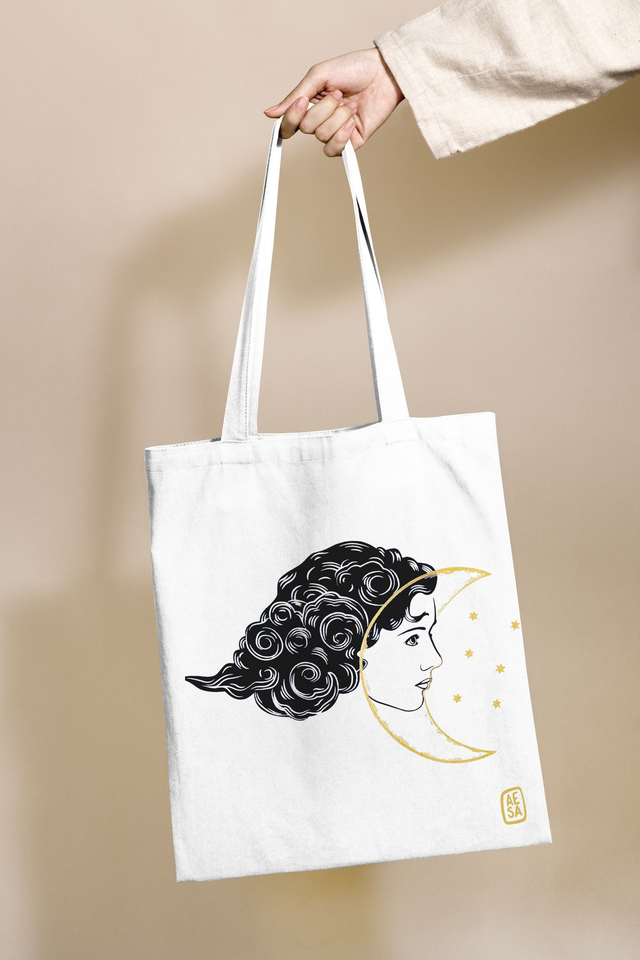 Sac Tote-bag en coton "Dans la Lune" imprimé en sérigraphie artisanale.