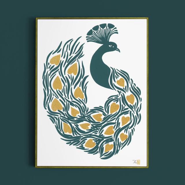 Affiche A3 "Paon" imprimée en sérigraphie artisanale
